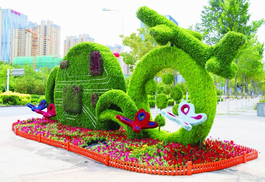 據(jù)了解,這些花卉造型從6月初開始進行,目前已全部完成。作為項目施工方之一的滿園春園林花卉公司工程師宮中奇介紹,這組花卉造型采用三維鏤空的形式,豐富了造型綠化的空間結構層次,增加了城市立體景觀藝術效果。